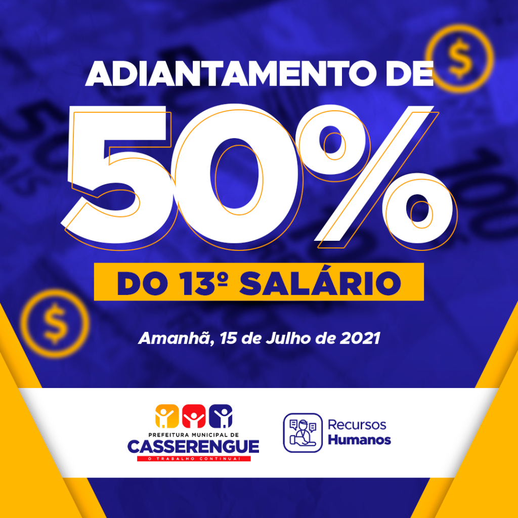 A Prefeitura de Casserengue realizará nesta quinta-feira (15/07) o pagamento antecipado de 50% do valor do décimo terceiro salário.