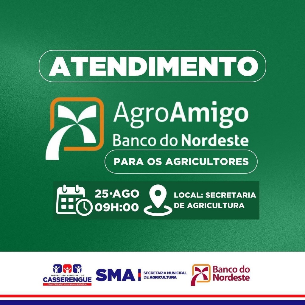 Atendimento Agroamigo dia 25 de agosto às 09H:00 na Secretaria de Agricultura.
