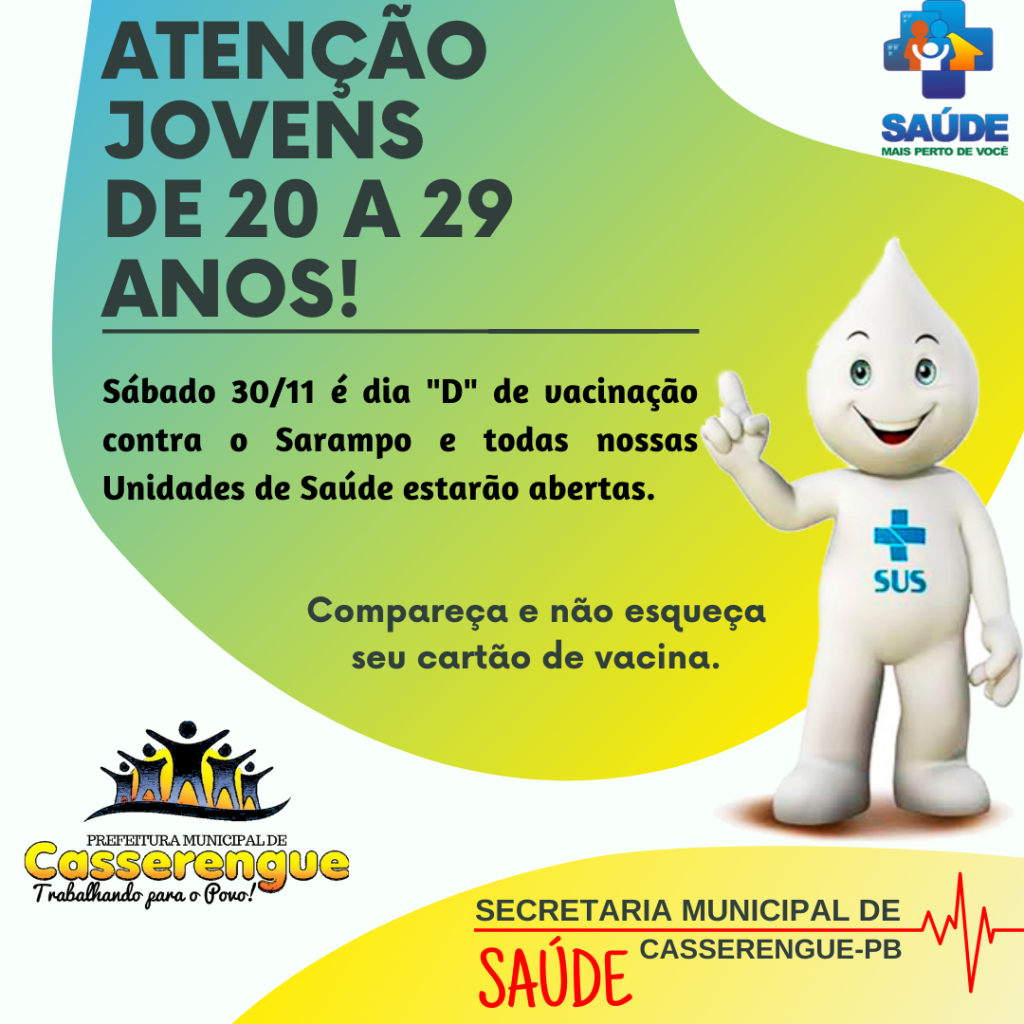 ATENÇÃO JOVENS DE 20 A 29 ANOS!