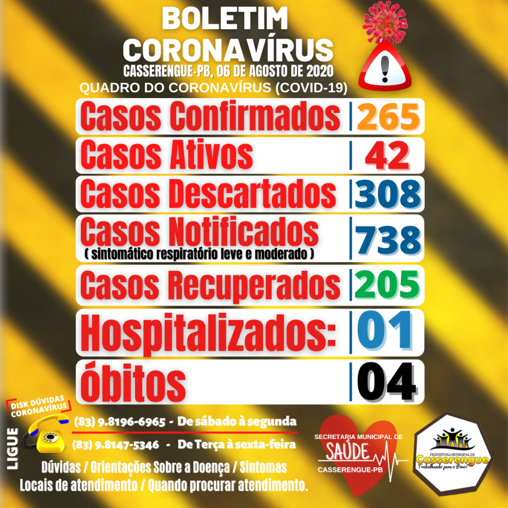 Boletim Epidemiológico, 06/08/2020 - Casserengue-PB