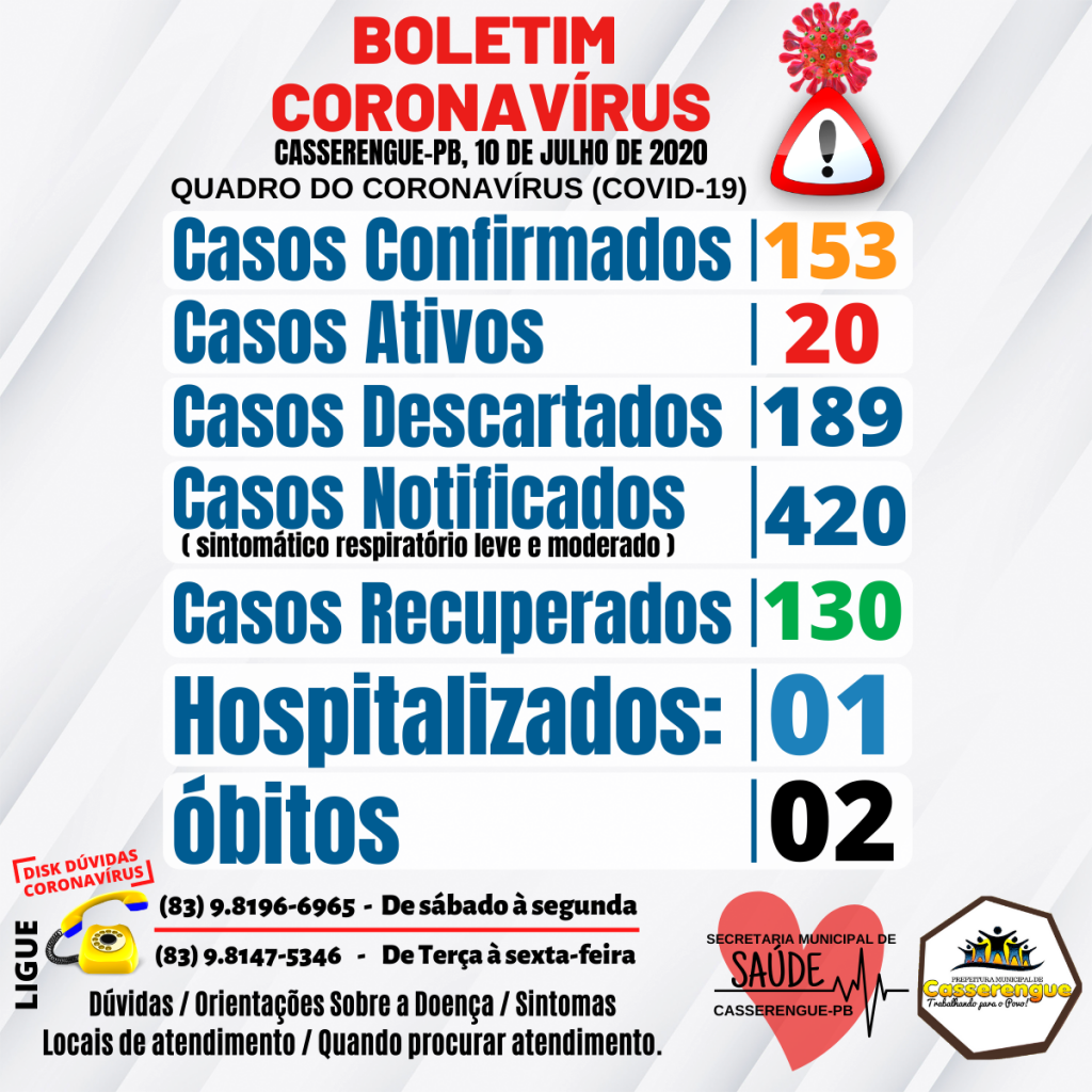 Boletim Epidemiológico, 10/07/2020 - Casserengue-PB