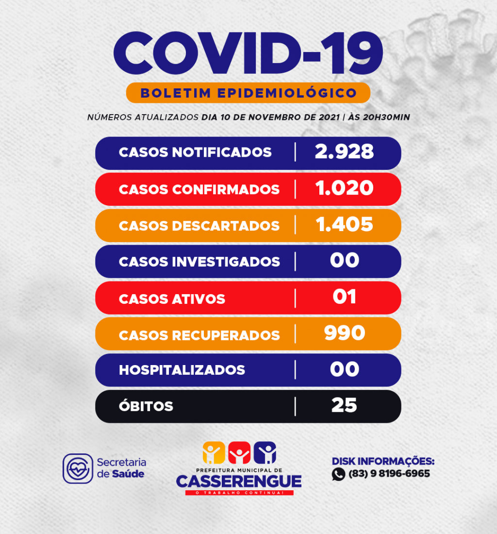 ℹ️BOLETIM EPIDEMIOLÓGICO, 10/11/2021 - CASSERENGUE-PBℹ️