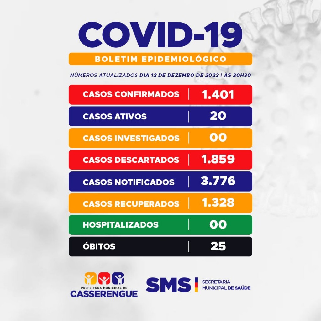 BOLETIM COVID-19 em 12 de dezembro de 2022 às 20h30min.