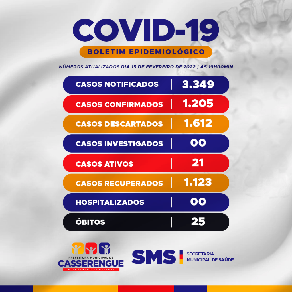 BOLETIM COVID-19 em 15 de fevereiro de 2022 às 19h00min.