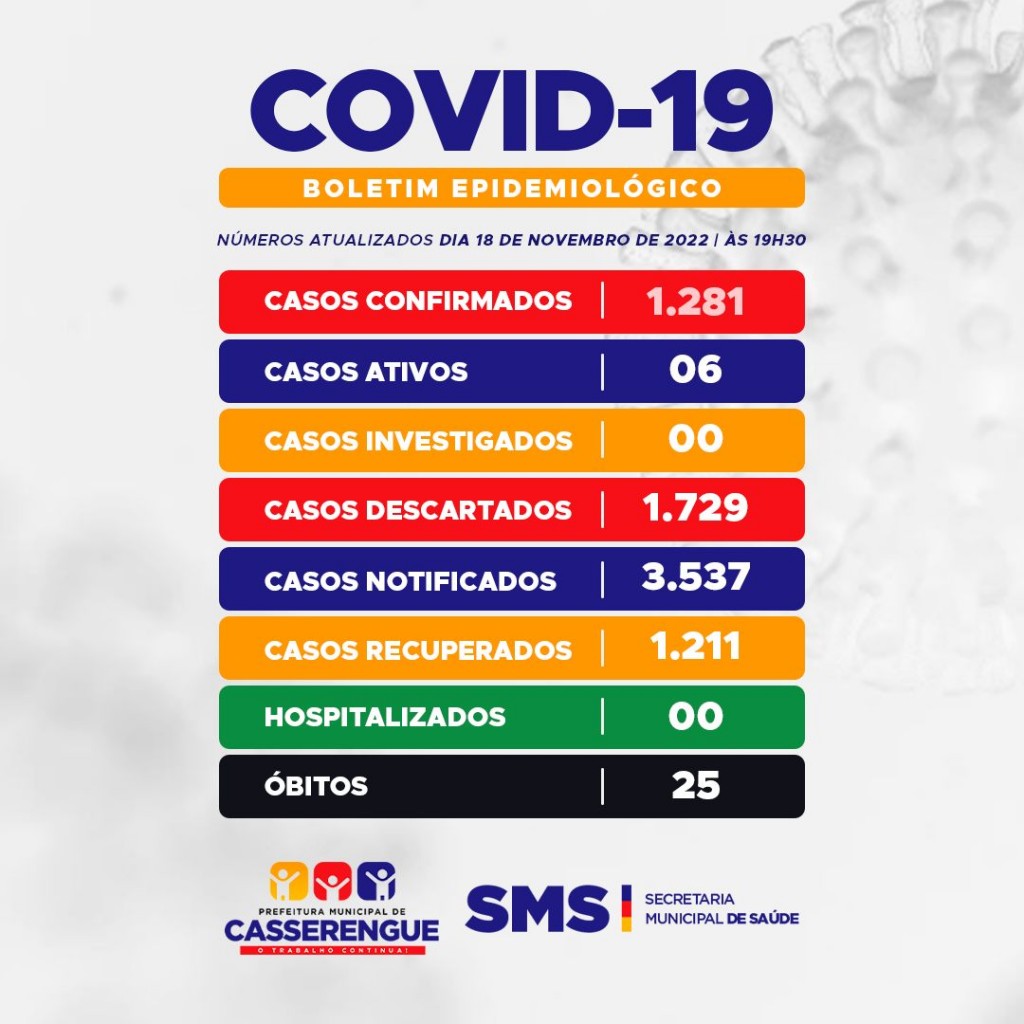 BOLETIM COVID-19 em 18 de novembro de 2022 às 19h30min.