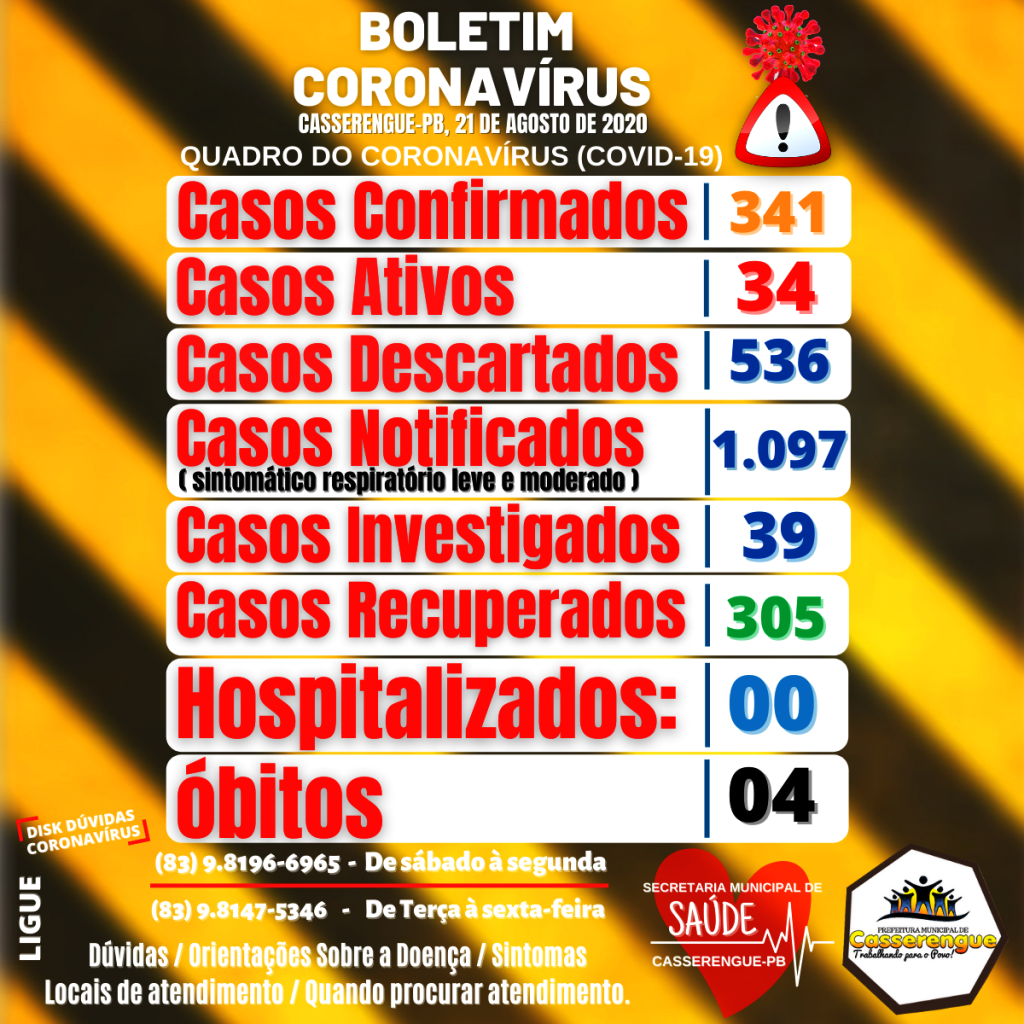 Casos Notificados (Sintomático respiratório leve e moderado): 1.097