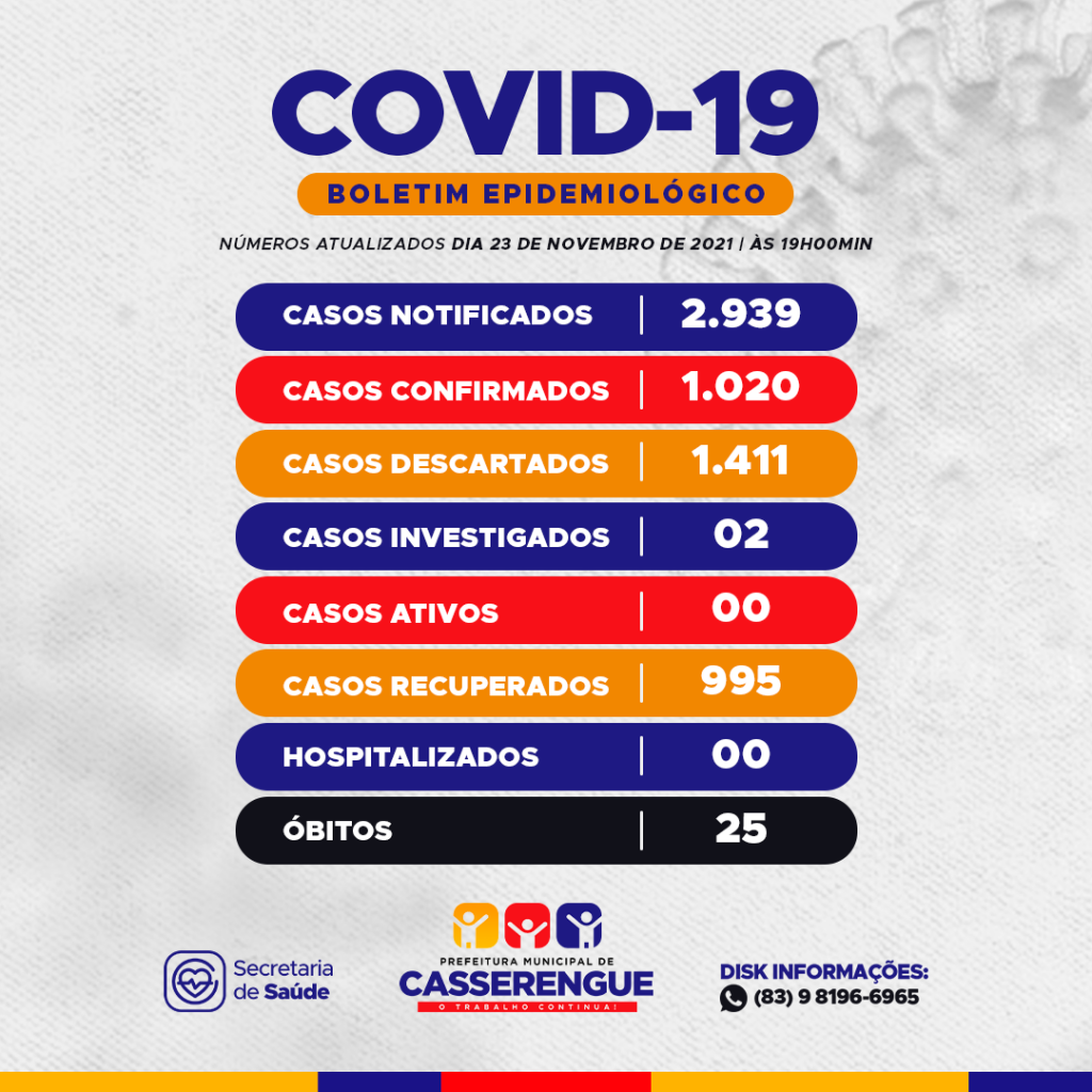 ℹ️BOLETIM EPIDEMIOLÓGICO, 23/11/2021 - CASSERENGUE-PBℹ️