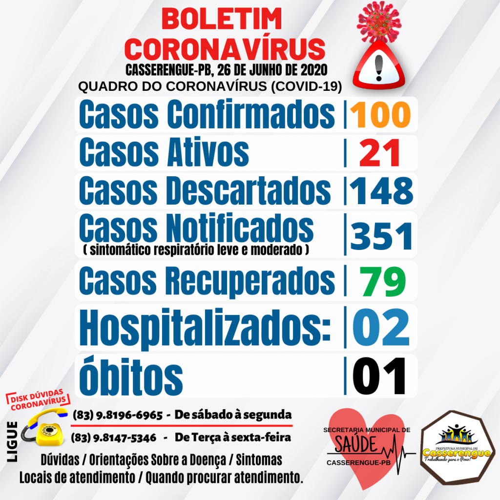 Boletim Epidemiológico, 26/06/2020 - Casserengue-PB