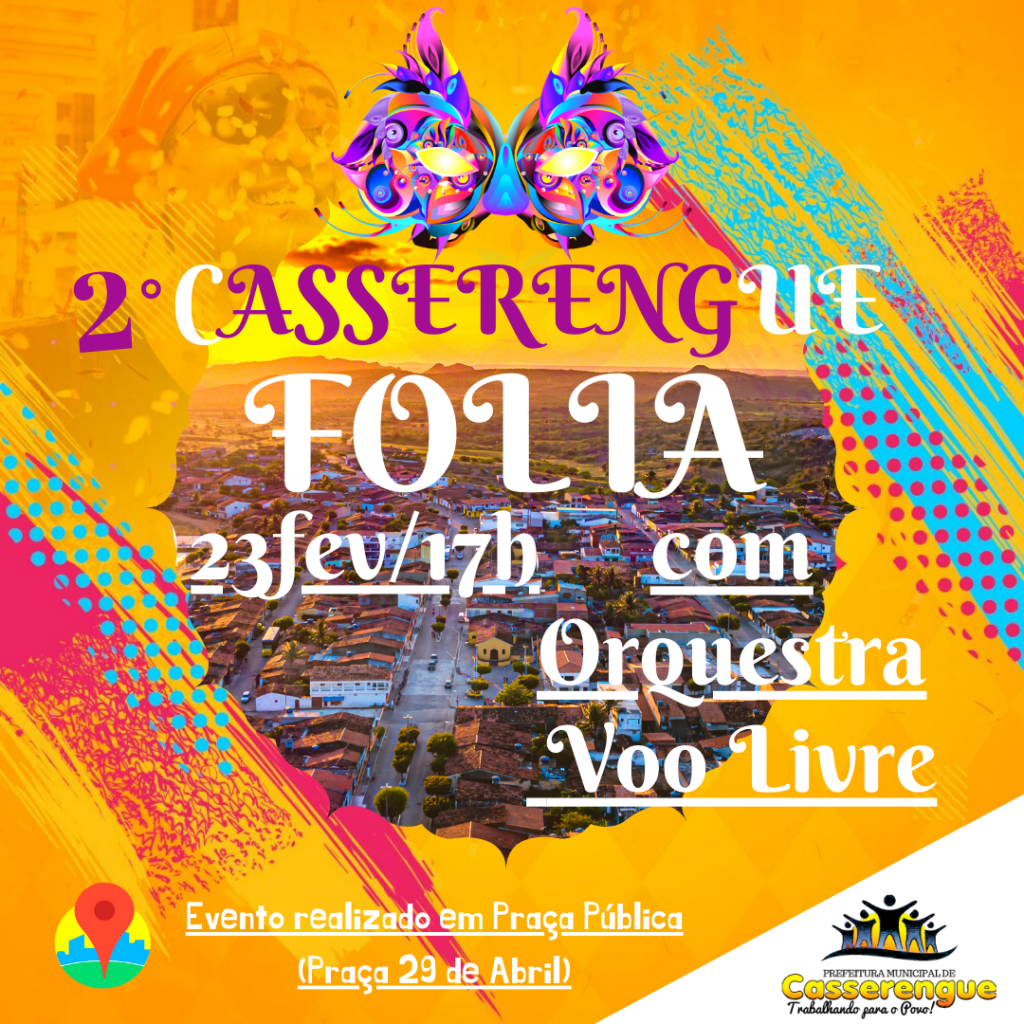 Casserengue (PB) – Com animação da Banda Orquestra Voo Livre, o Governo do Município promove no dia 23 de fevereiro (domingo) a 2° edição do Casserengue Folia. O objetivo da iniciativa é promover diversão e lazer para os munícipes.