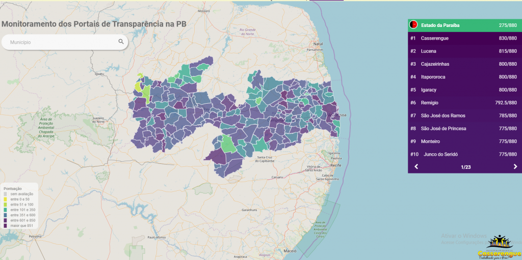 Casserengue foi classificada em 1º lugar no ranking dos municípios em transparência pelo Tribunal de Contas do Estado (TCE-PB). Com a nota 830/880 o município segue em 1º em transparência pelo 3º mês consecutivo.