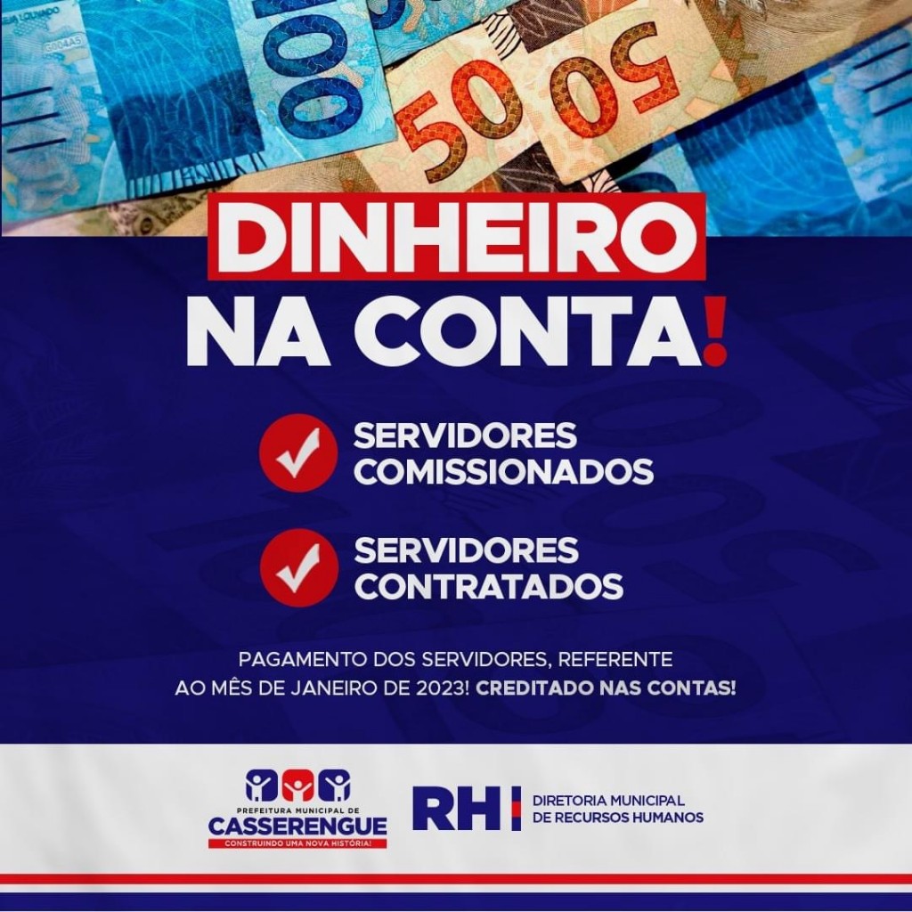 A Prefeitura de Casserengue informa que o pagamento do mês de janeiro está na conta dos: