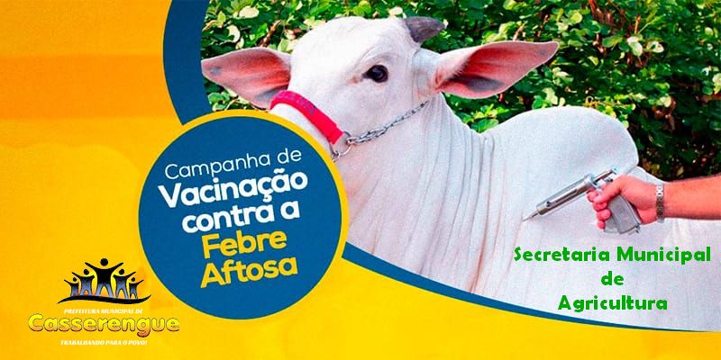 A Secretaria de Agricultura, em parceria com a Secretaria de Estado do Desenvolvimento da Agropecuária do Estado do Paraíba, comunica o início da primeira etapa da campanha de vacinação contra a febre aftosa, que acontece até o dia 31 de maio.