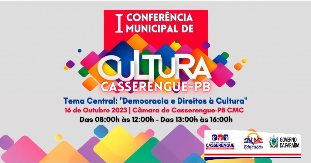 É com grande satisfação que convidamos você a participar da Primeira Conferência Cultural do Município de Casserengue, que terá como Tema Central: "Democracia e Direitos à Cultura". Este evento promete ser uma jornada única de aprendizado, discussões e celebração da rica herança cultural da nossa comunidade.