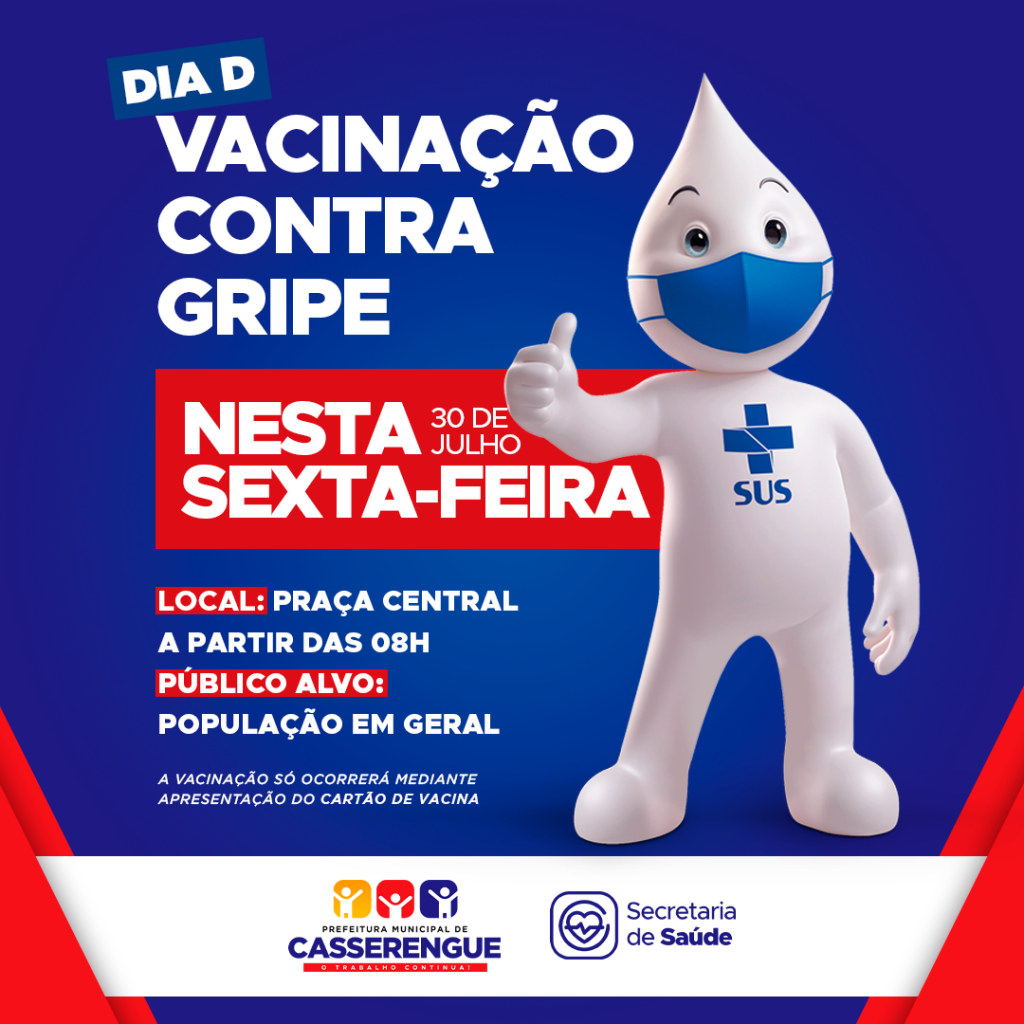 A Prefeitura de Casserengue realizará através da Secretaria Municipal de Saúde o Dia D de Vacinação contra a Gripe.