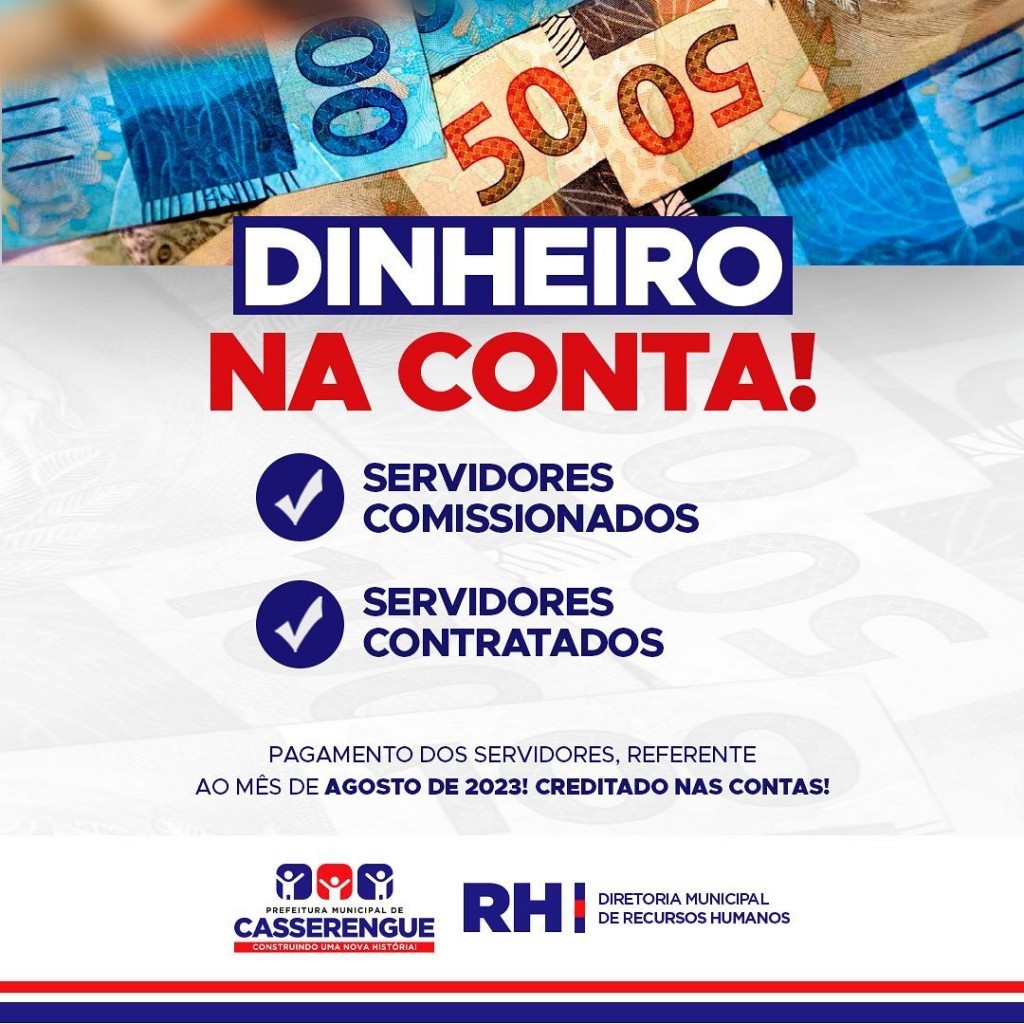 Pagamento dos servidores, referente ao mês de agosto de 2023, creditado nas contas