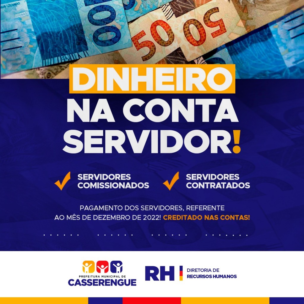 A Prefeitura de Casserengue informa que o pagamento do mês de #Dezembro está na conta dos: