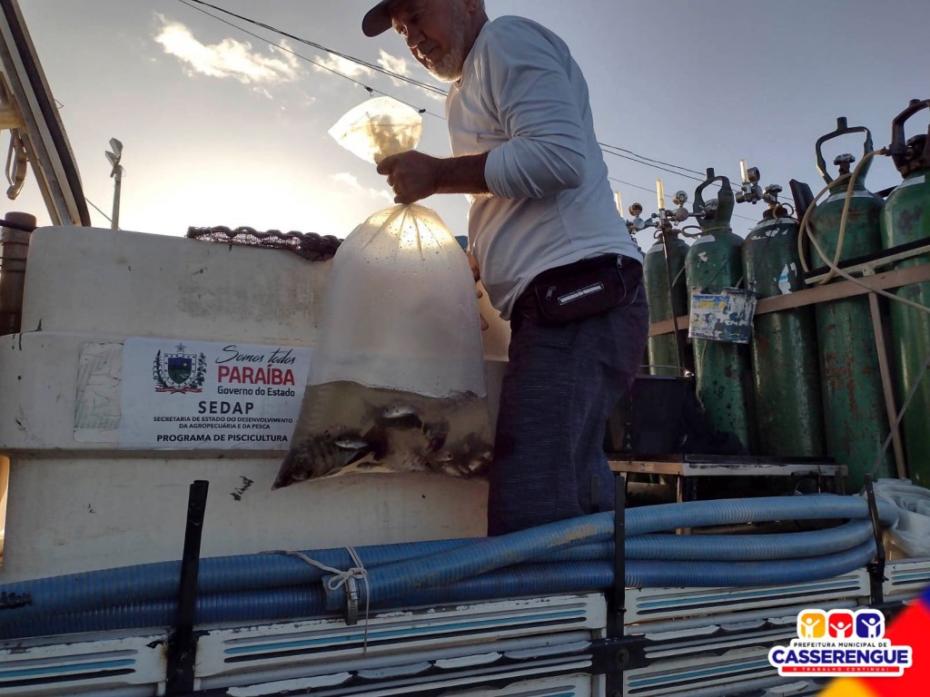 A Prefeitura Municipal de Casserengue recebeu por meio da Secretaria de Agricultura, alevinos de tilápia, carpa e tambaqui, vindas da Estação de Piscicultura situada em Itaporanga, sertão do estado.