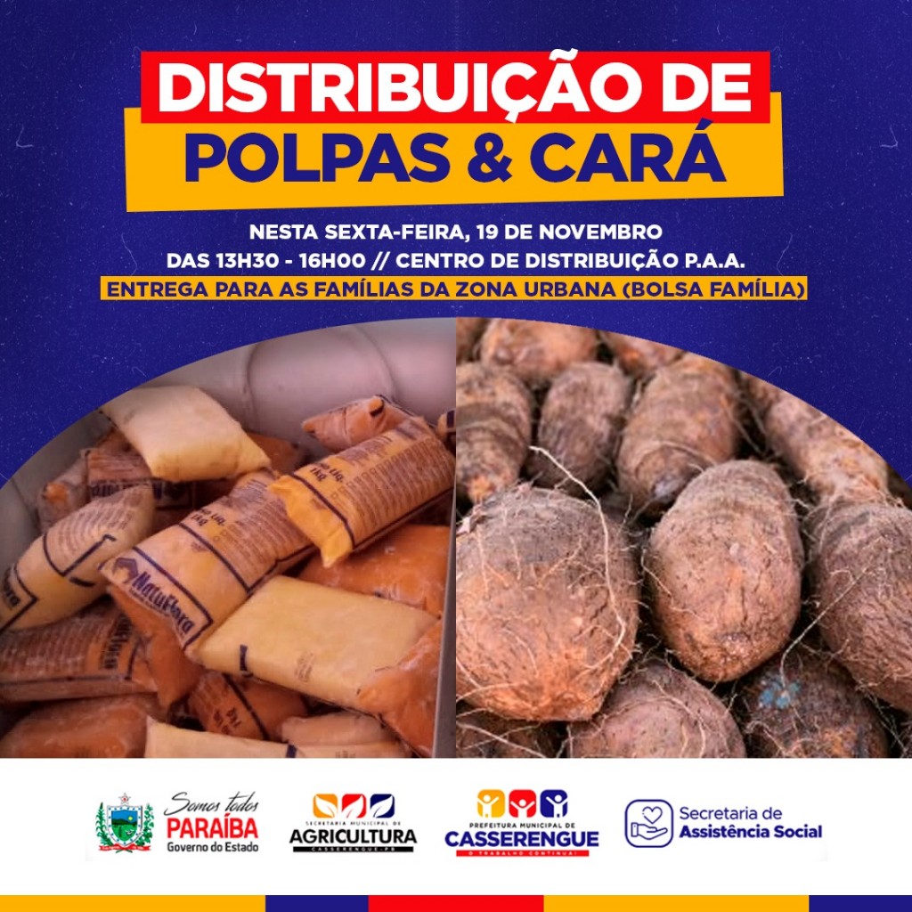 A Secretaria Municipal de Assistência Social realizará nesta sexta-feira (19/nov), em parceria com o Governo Estadual e a Secretaria Executiva de Segurança Alimentar e Economia - Solidária vinculada a - SEDH - a entrega de Polpas De Frutas & Carás do Programa de Aquisição de Alimentos (PAA).