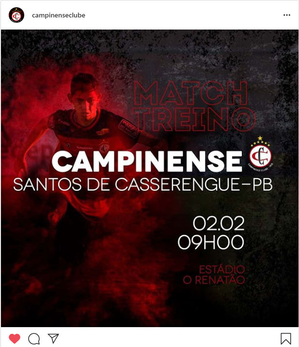 O Campinense realizará um match-treino no próximo domingo (02), às 9h, contra o Santos-PB, equipe amadora do município de Casserengue-PB, no estádio Renatão.