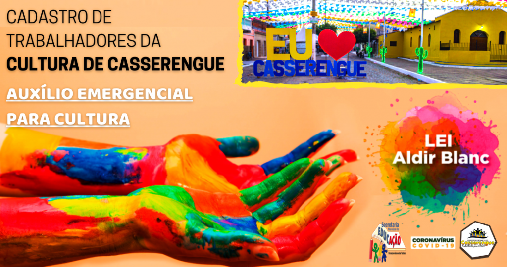 A Prefeitura Municipal de Casserengue, através da Secretaria de Educação e Cultura, informa que está aberta a plataforma para recebimento dos cadastros para pessoas físicas, jurídicas e espaços culturais situados no Município, para fomentar a base de dados para utilizar nas ações de aplicação da Lei Federal Aldir Blanc, Nº 14.017/2020, de ações emergenciais destinadas ao setor cultural. O cadastro cultural é destinado aos trabalhadores da cultura, espaços artísticos e culturais, microempresas e pequenas empresas culturais, cooperativas, instituições e organizações culturais comunitárias que tiveram suas atividades interrompidas por força das medidas de isolamento social devido à pandemia da Covid-19 no município de Casserengue. Os interessados devem efetuar seu cadastro acessando o link abaixo, que está disponibilizado também em banner neste portal, em posição de destaque, enquanto o prazo para cadastramento estiver vigente: https://docs.google.com/forms/d/1YTbB0VhslP7-OMEFlieQLKSlcBEZY5GhzyaUToTM2lo/viewform?edit_requested=true