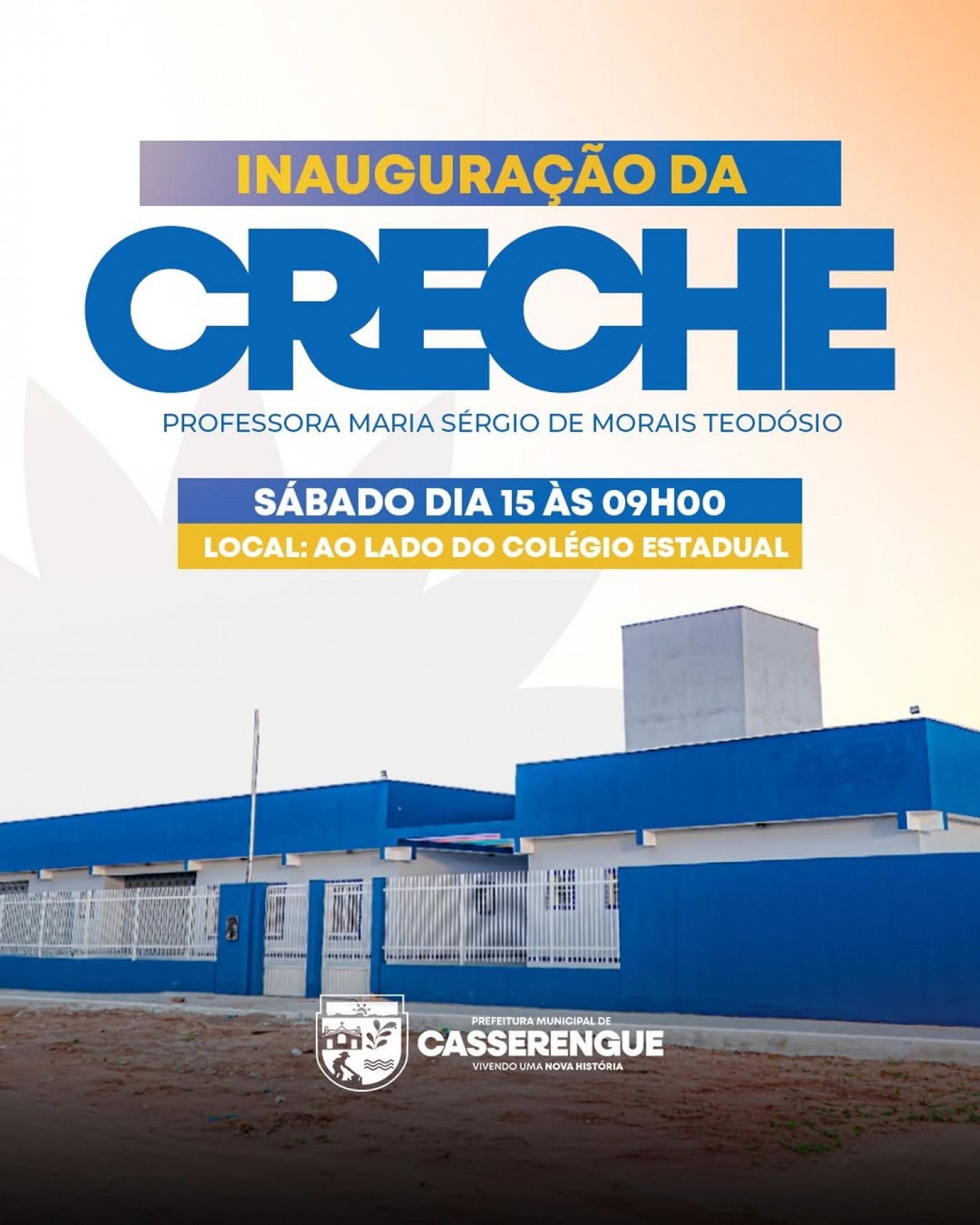 Neste sábado, 15 de março, às 9h, será inaugurada a Creche Professora Maria Sérgio de Morais Teodósio!