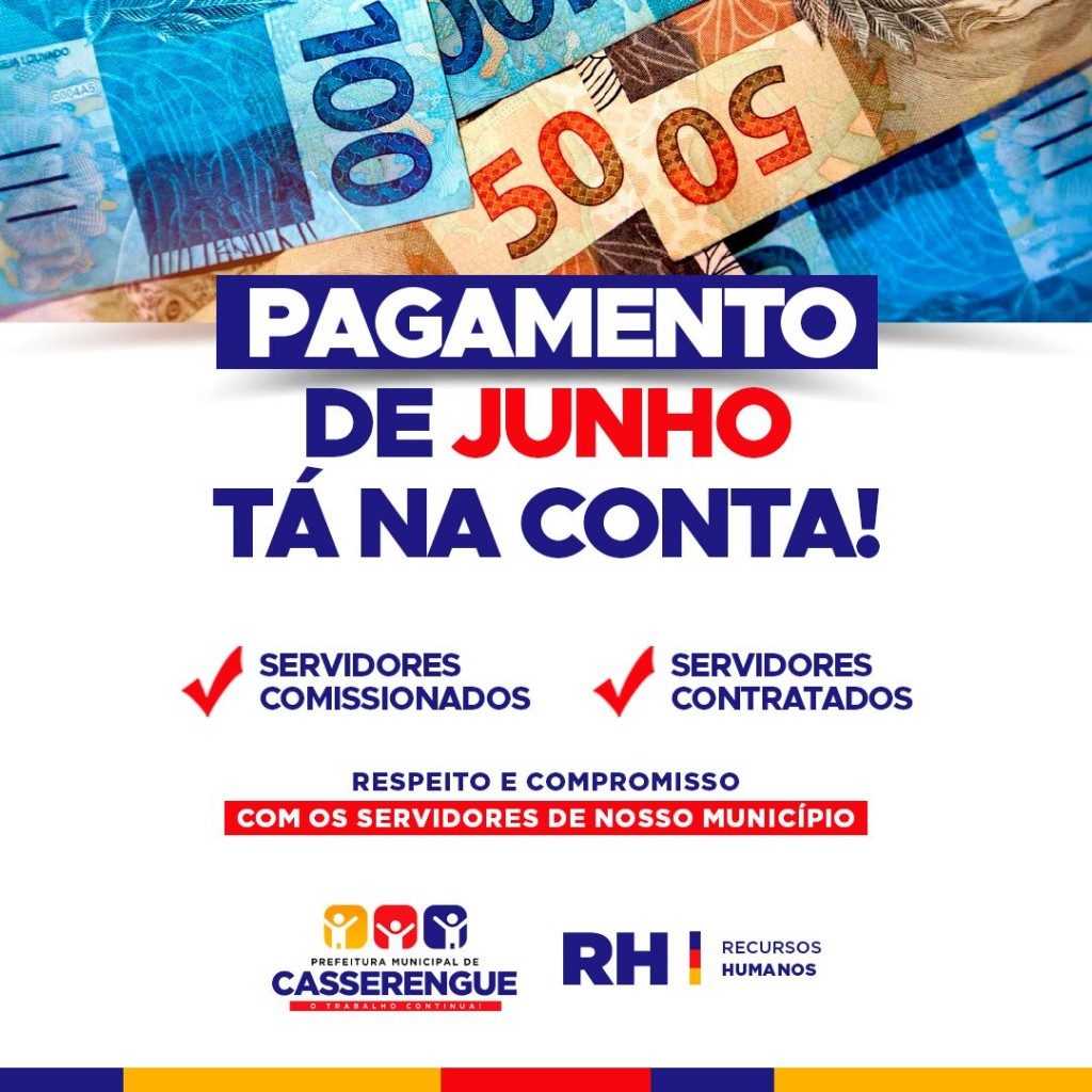 A Prefeitura de Casserengue por meio da Diretoria de Recursos Humanos, efetuou hoje (08/07) o pagamento dos seus servidores COMISSIONADOS e CONTRATADOS.