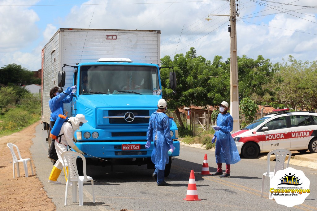 Para evitar a proliferação do coronavírus, os veículos que chegam a Casserengue, estão sendo desinfetados, condutores e passageiros recebem máscaras e tem as mãos desinfetadas com álcool gel na barreira sanitária que foi montada na entrada do município.