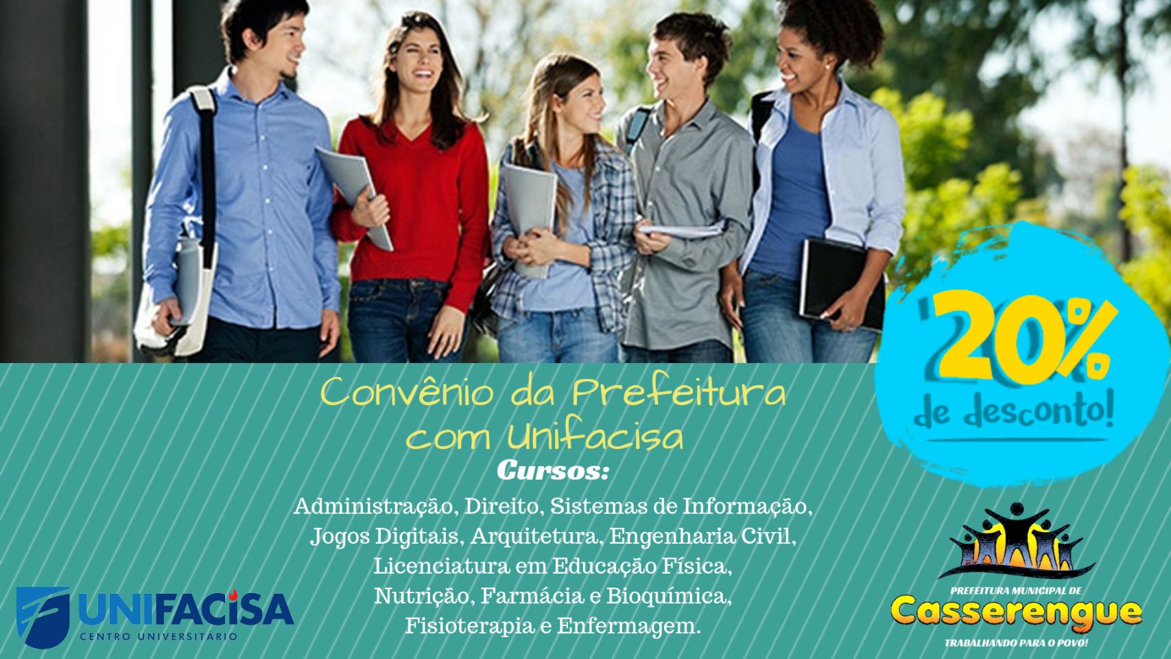 Serão contemplados com o benefício do convênio os estudantes residentes e domiciliados em Casserengue que ingressarem nos cursos de graduação em: Administração, Direito, Sistemas de Informação, Jogos Digitais, Arquitetura, Engenharia Civil, Licenciatura em Educação Física, Nutrição, Farmácia e Bioquímica, Fisioterapia e Enfermagem.