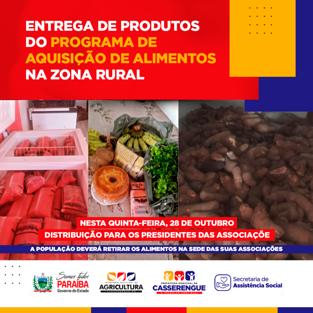 A Secretaria Municipal de Assistência Social realizará nesta quinta-feira (28/out), em parceria com o Governo Estadual e a Secretaria Executiva de Segurança Alimentar e Economia - Solidária vinculada a - SEDH - a entrega de produtos do Programa de Aquisição de Alimentos (PAA).