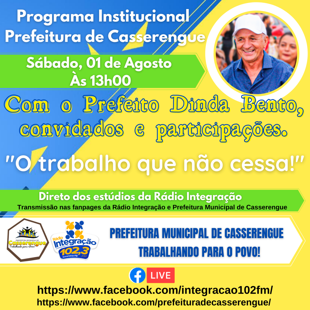 Direto dos estúdios da Rádio Integração - Transmissão nas fanpages da Rádio Integração e Prefeitura Municipal de Casserengue