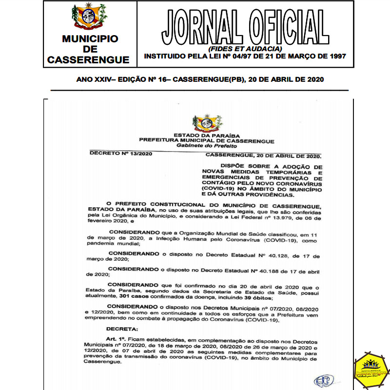 Link para download do Decreto: https://www.casserengue.pb.gov.br/portal/legislacao/decretos/decreto-n0-132020-casserengue-20-de-abril-de-2020