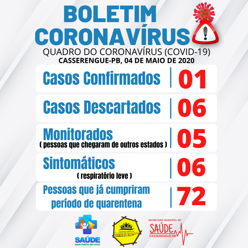 QUADRO DO CORONAVÍRUS (COVID-19) - CASSERENGUE-PB, 04 DE MAIO DE 2020
