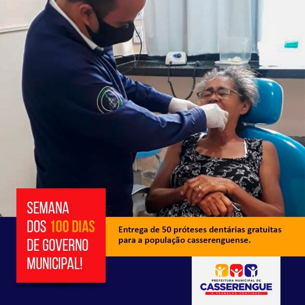 Nestes primeiros 100 dias de governo, a Secretaria de Saúde de nosso município realizou a entrega de 50 próteses dentárias gratuitas para a população.