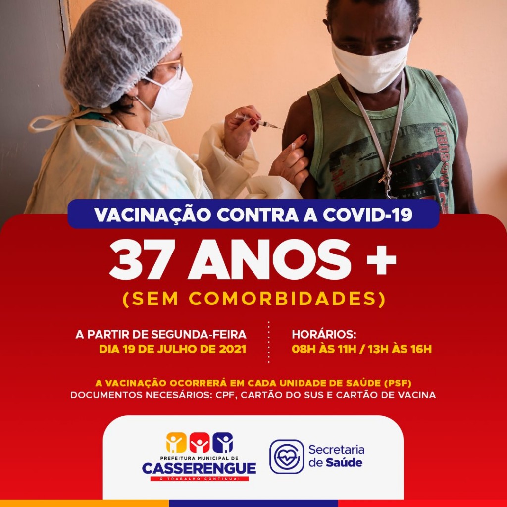 A partir desta segunda-feira (19), iniciaremos a vacinação das pessoas com 37 anos acima - sem comorbidades. 🦯💛⠀