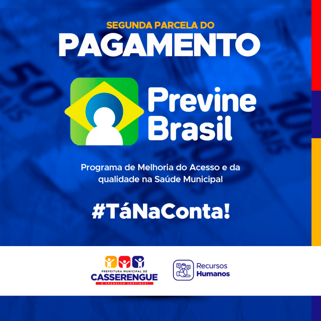 A Prefeitura Municipal de Casserengue informa que a segunda parcela do pagamento referente ao incentivo do Previne Brasil - Programa de Melhoria do Acesso e da qualidade na Saúde Municipal, foi creditada nas contas nesta terça-feira, 05 de outubro de 2021.