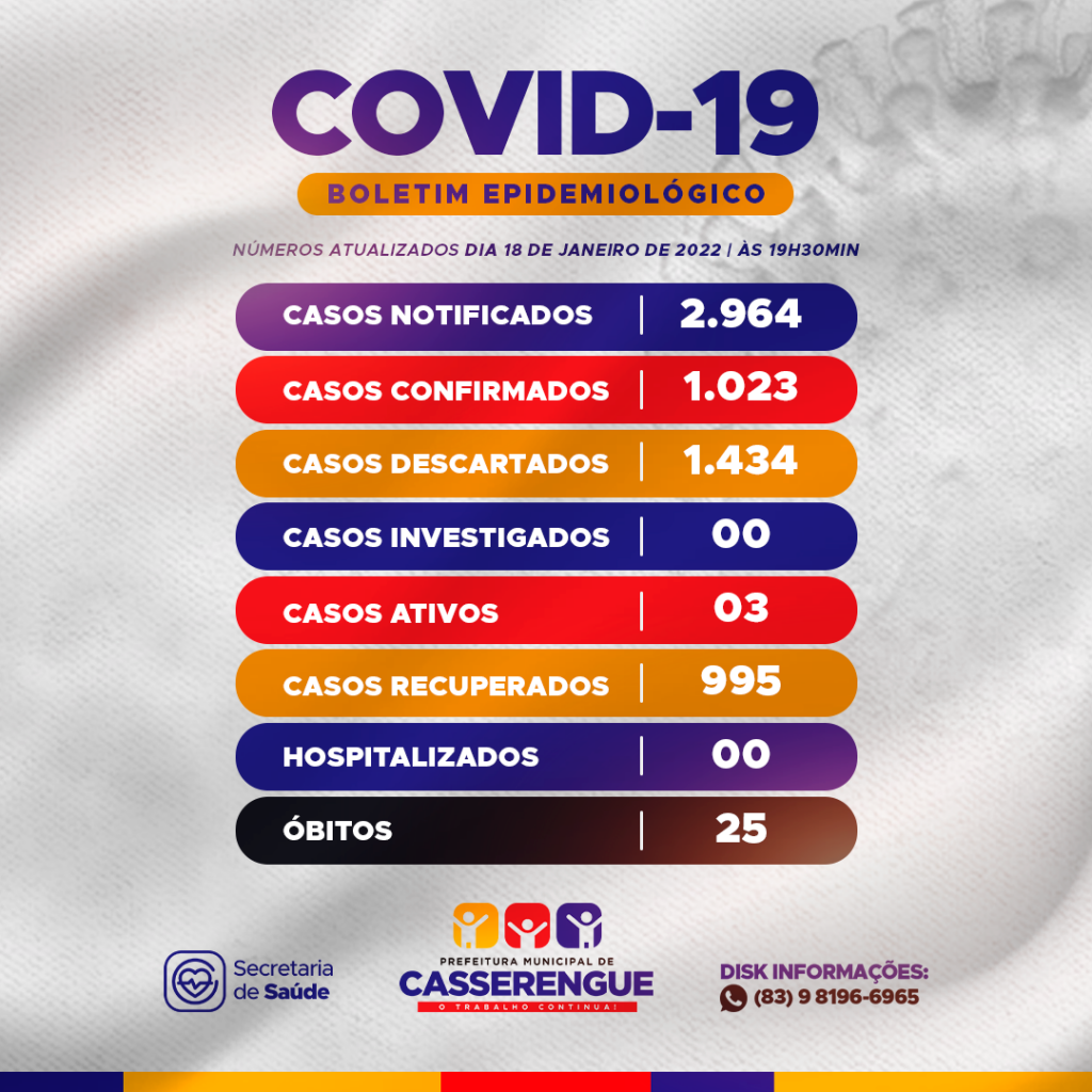 BOLETIM COVID-19 em 18 de janeiro de 2022 às 19h30min.