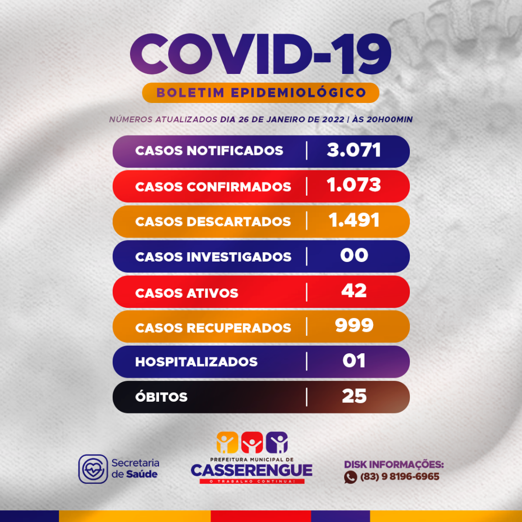 BOLETIM COVID-19 em 26 de janeiro de 2022 às 20h00min.