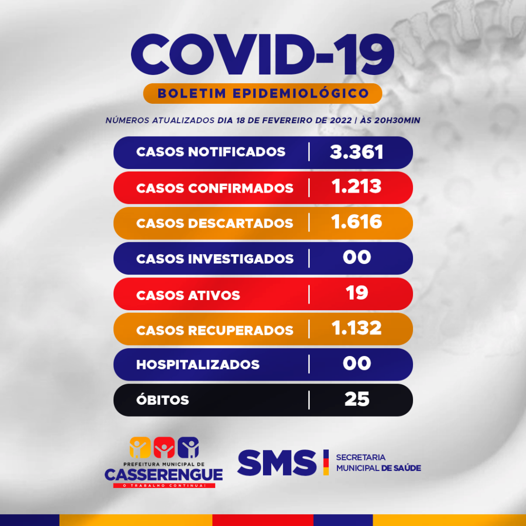 BOLETIM COVID-19 em 18 de fevereiro de 2022 às 20h30min.
