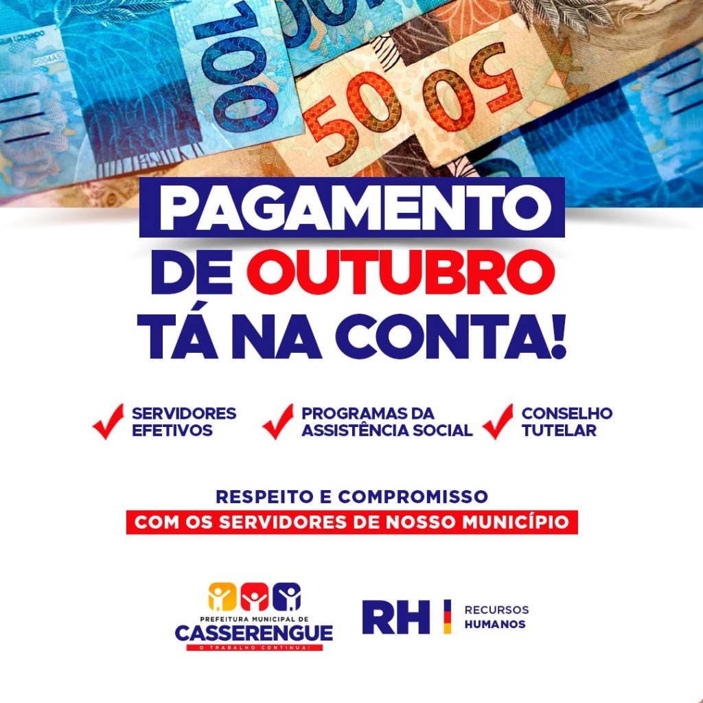 A Prefeitura de Casserengue por meio da Diretoria de Recursos Humanos, efetuou hoje (29) o pagamento dos seus servidores EFETIVOS, PROGRAMAS DA ASSISTÊNCIA SOCIAL E CONSELHEIROS TUTELARES.
