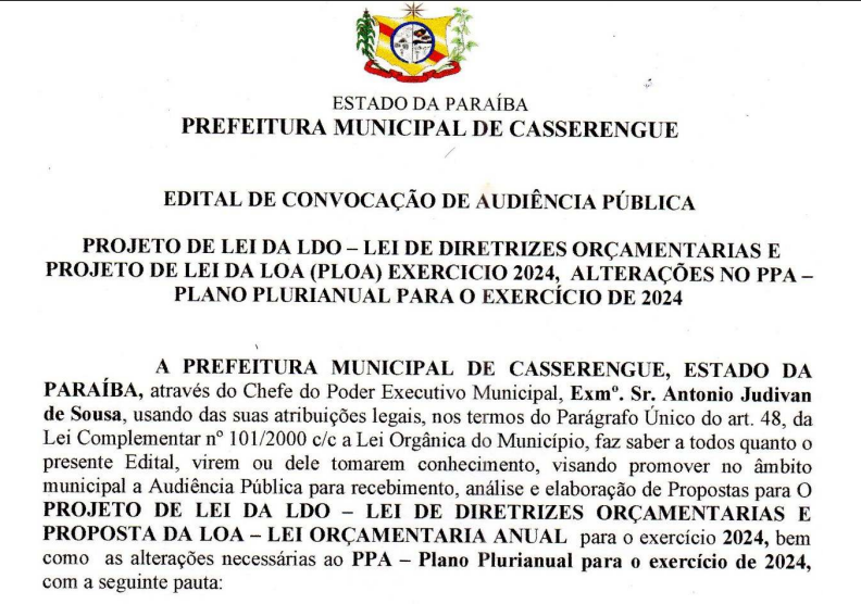 Link para download do documento: EDITAL DE CONVOCAÇÃO DE AUDIÊNCIA PÚBLICA | Editais - Prefeitura Municipal de Casserengue