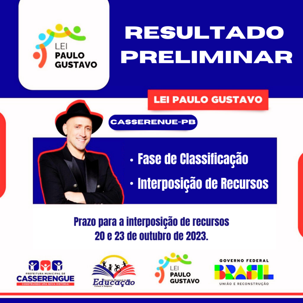 link 01 Publicações - RESULTADO PRELIMINAR LEI PAULO GUSTAVO - CASSERENGUE – PB | Documentos - Prefeitura Municipal de Casserengue