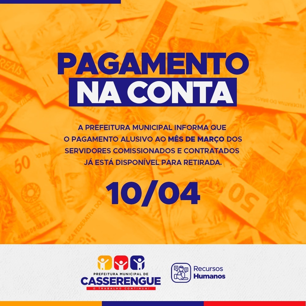 A Prefeitura Municipal de Casserengue creditou neste sábado (10/abr.) o salário alusivo ao mês de março dos servidores comissionados e contratados.
