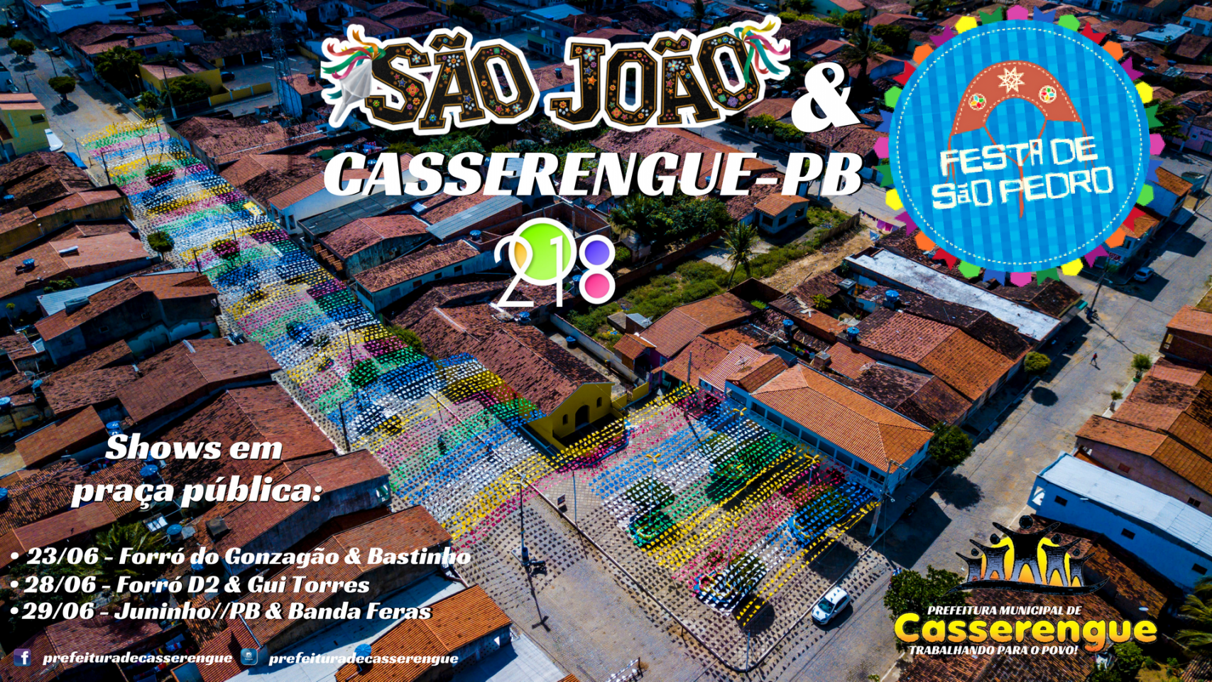Casserengue está preparada para se tornar um grande ‘arraiá’ nos dias 23, 28 e 29 de junho/2018. A ‘Festa Junina’, realizada pela Prefeitura, em Praça Pública, terá uma novidade esse ano, O prefeito Genival Bento da Silva (Dinda), inserirá o dia 23 de junho nos festejos junino da cidade. Organizada pela Prefeitura Municipal de Casserengue, os festejos juninos promete animar e aquecer toda a cidade.