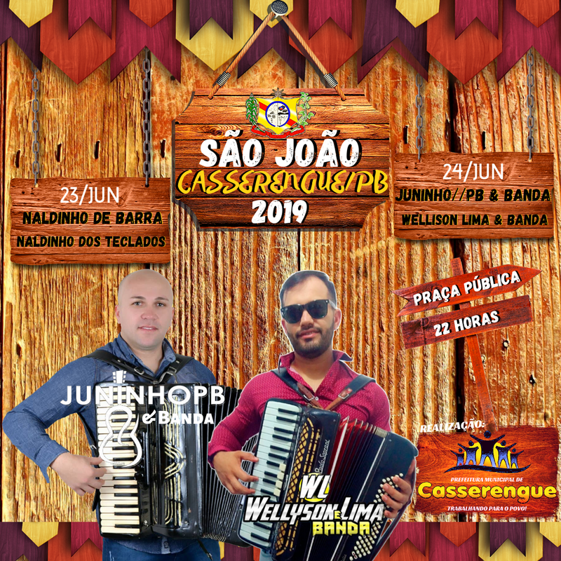 Nos dias 23 e 24 de junho/2019, será realizado pela Prefeitura Municipal, o São João Oficial de Casserengue, uma iniciativa e total apoio do Prefeito Dinda Bento.