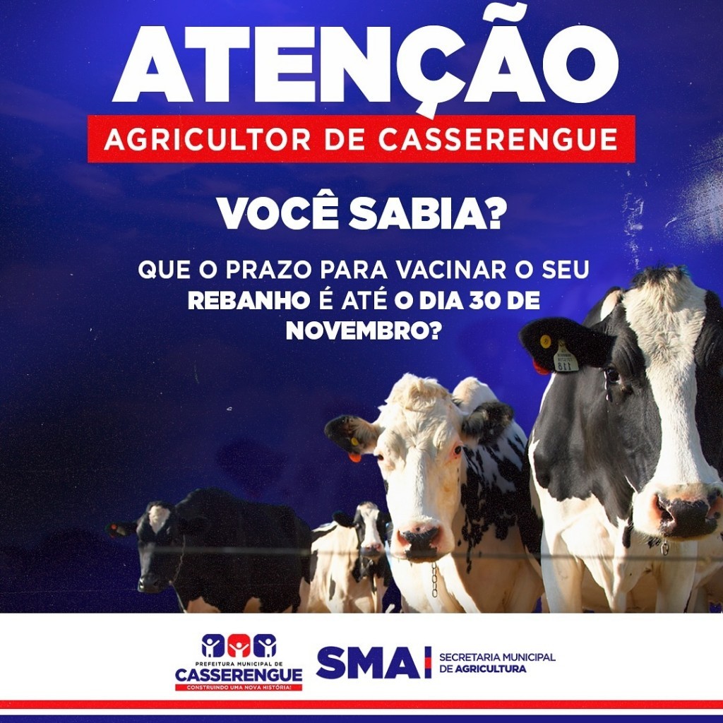 O prazo para vacinar o seu rebanho é até o dia 30 de novembro.