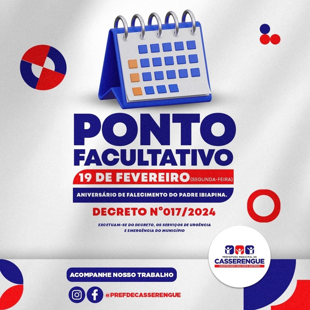 ATENÇÃO | PONTO FACULTATIVO NO MUNICÍPIO