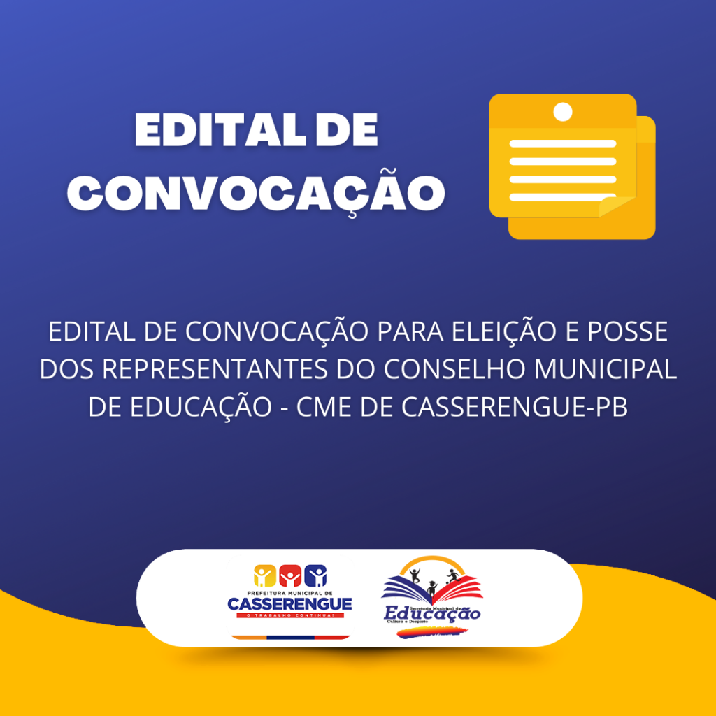 EDITAL DE CONVOCAÇÃO PARA ELEIÇÃO E POSSE DOS REPRESENTANTES DO CONSELHO MUNICIPAL DE EDUCAÇÃO - CME DE CASSERENGUE-PB