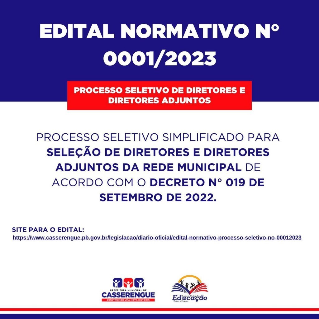 Link para acesso ao Edital: https://www.casserengue.pb.gov.br/legislacao/diario-oficial/edital-normativo-processo-seletivo-no-00012023