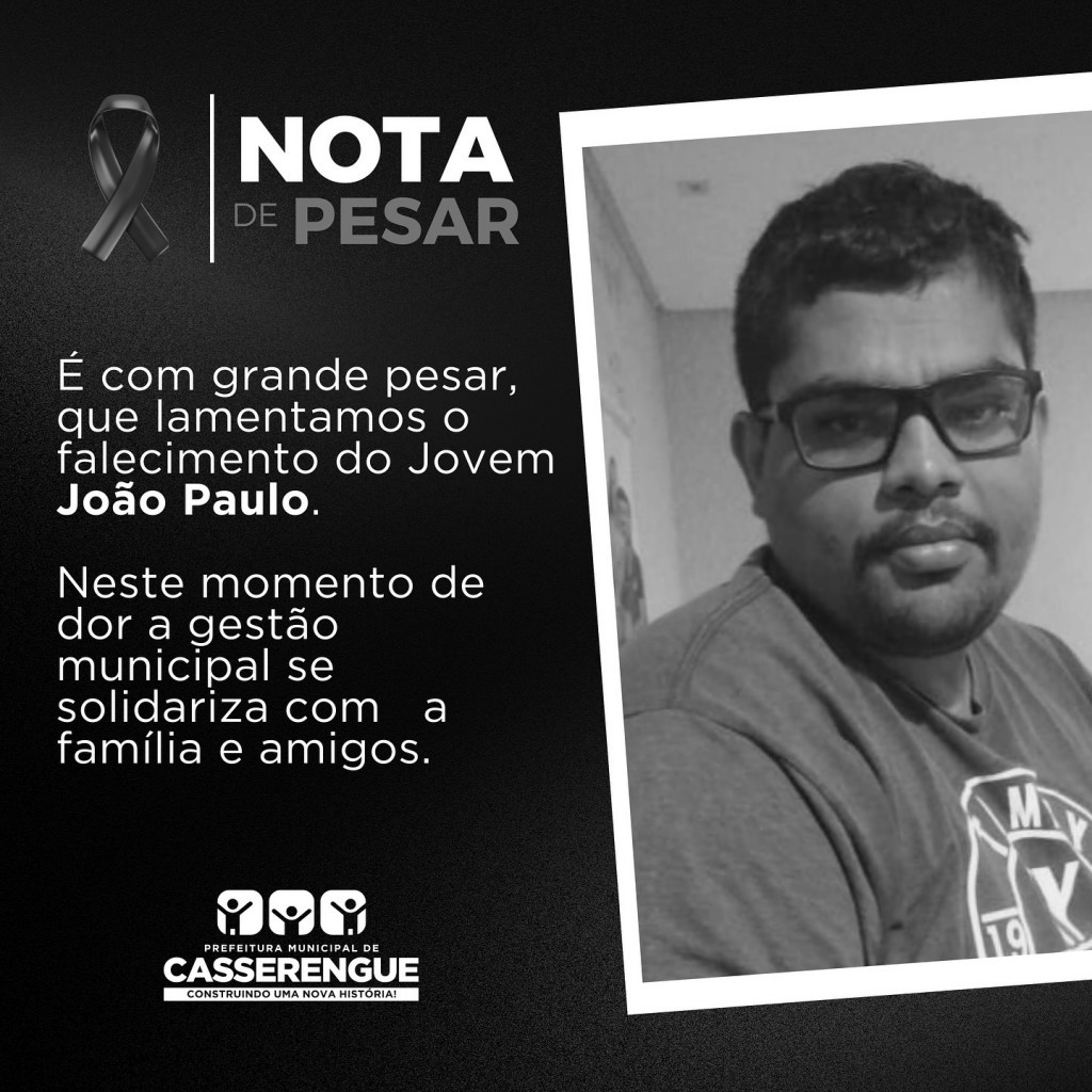 É com grande pesar, que lamentamos o falecimento do Jovem João Paulo.