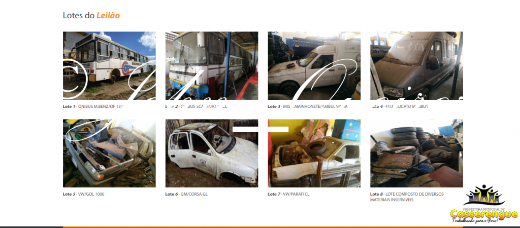 Os interessados podem solicitar o edital do leilão no setor de Licitações, localizado na sede da Prefeitura de Casserengue ou através do site da https://www.casserengue.pb.gov.br/ e ainda no site da http://arremateleiloes.com.br/…/prefeitura-municipal-de-cas…. No edital, além de conter todos os documentos necessários para a participação no leilão, estão relatadas todas as informações fundamentais do processo.